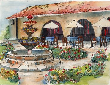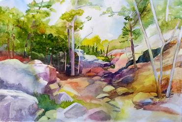 Many of my watercolors depict times and places personal to me. I enjoy recording sights and travels in water media. Some of my paintings reflect my travels others are from the beautiful places I have lived. I work outdoors and in the studio on both realistic and interpretative pieces. These are landscapes, florals, and imagined memories.