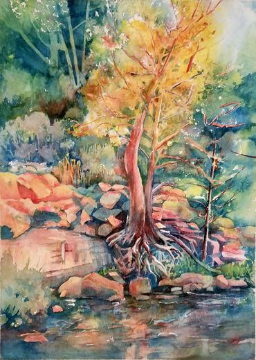 The sparkle of watercolor paintings has always attracted me. I like the way light bounces off the paper. I delight in applying color and beautiful shapes. I like line work and brush strokes.